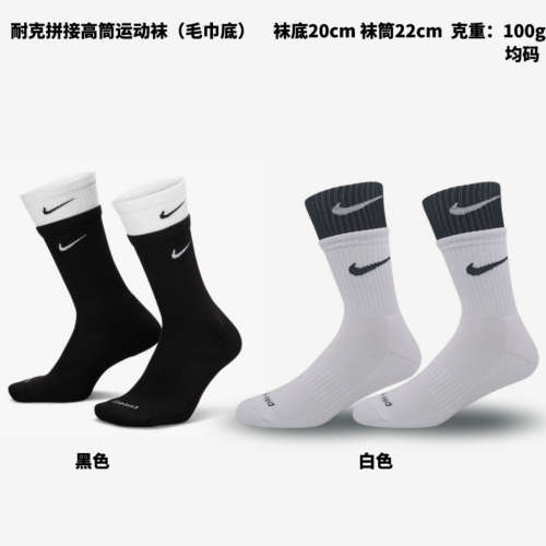 中筒/高筒拼接毛巾底运动袜