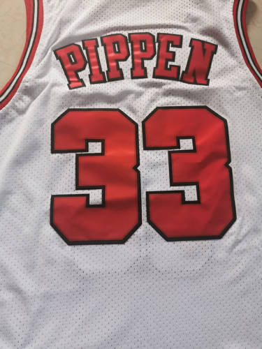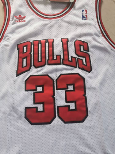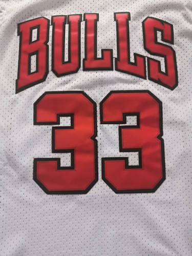 公牛队33号皮蓬白色网眼复古球衣