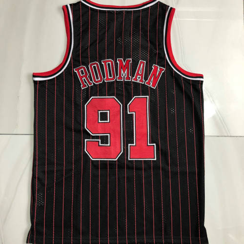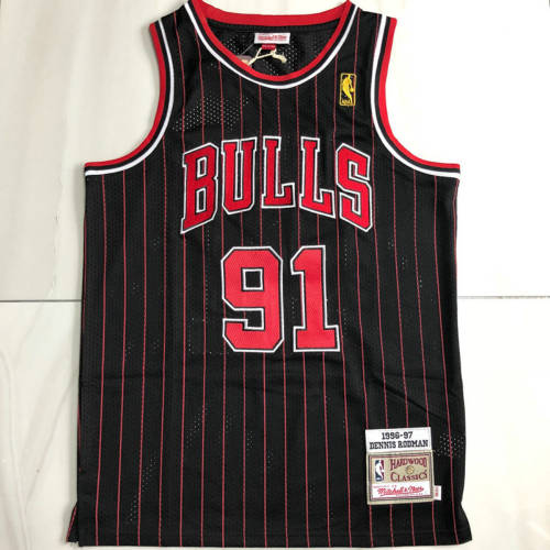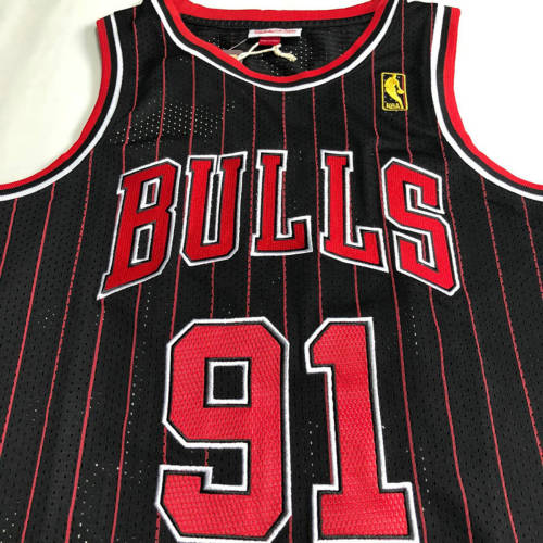 公牛队91号AU密绣96-97黑红条XS-XXL