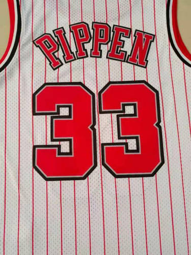 公牛33号白色条纹复古球衣