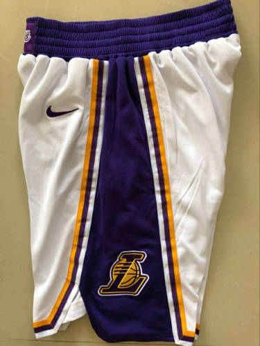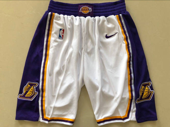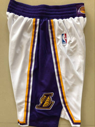 湖人新款球裤白色全刺绣S-XXL