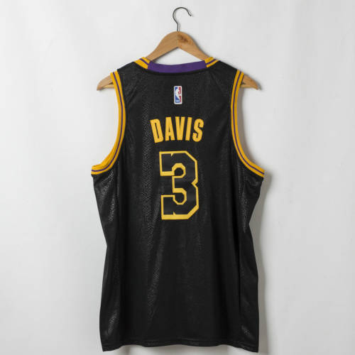 湖人3号戴维斯绣花版黑色蛇纹球衣