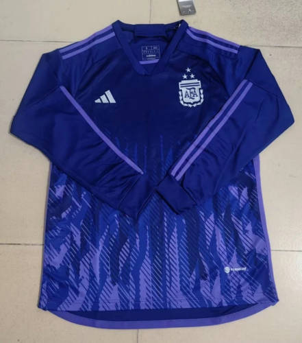 2022 Argentina Away Long Sleeve 3stars Soccer Jerseys