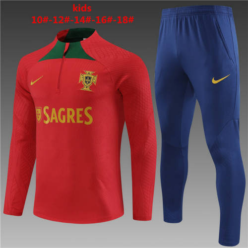 2023 Portugal Red Player Version Kids Long Sleeve Training Suit