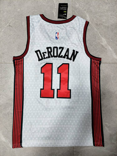 22-23赛季NBA公牛队11#德玛尔·德罗赞白色球衣