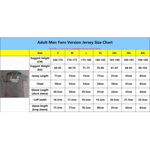 Soccer Jerseys size : S M L XL 2XL 3XL 4XL