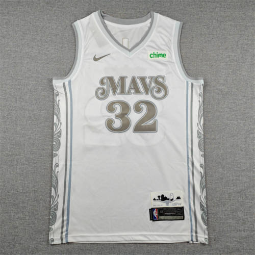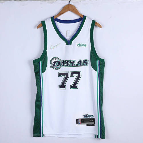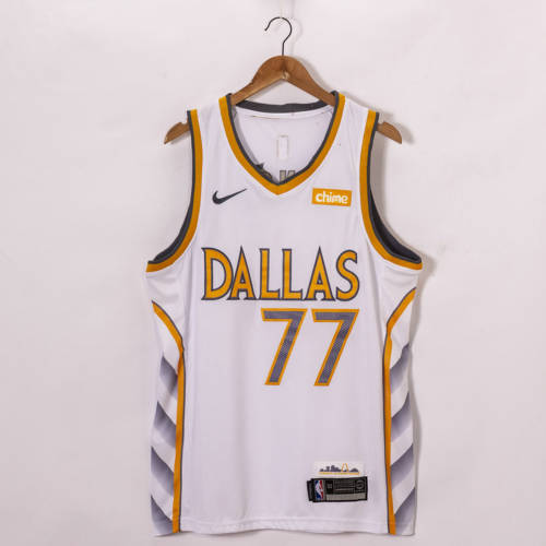 25新款nba小牛队77#东契奇城市版白色球衣