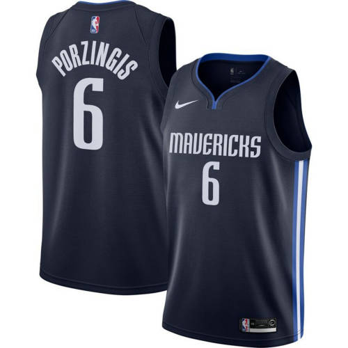 Nba耐克球迷版小牛6#波尔津吉斯新款深蓝色球衣