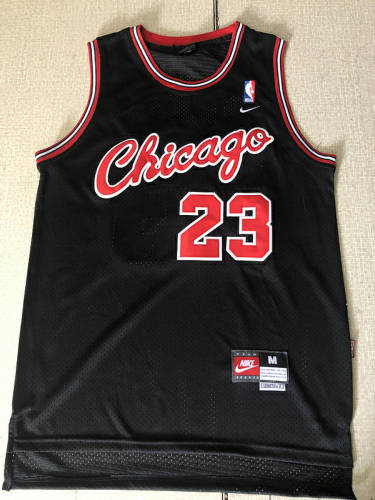 公牛队23号乔丹c连体字黑色网眼复古球衣