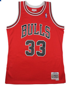 公牛33号 皮蓬 红白双色复古版nba球衣