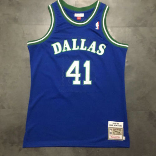 Mitchell Ness 小牛 41 诺维斯基 新秀复古蓝 网眼密绣