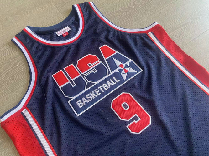 MItchell ness 梦一队9号 乔丹 AU密绣蓝色球衣