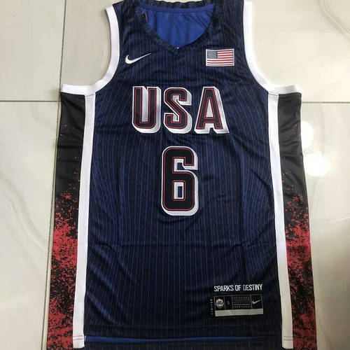 2024奥运会美国队6号詹姆斯白蓝色xs-xxl