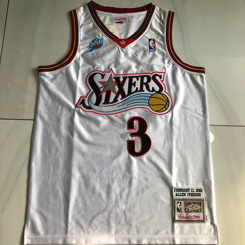 丝光版白色艾弗森 2001全明星au全刺绣xs-xxl