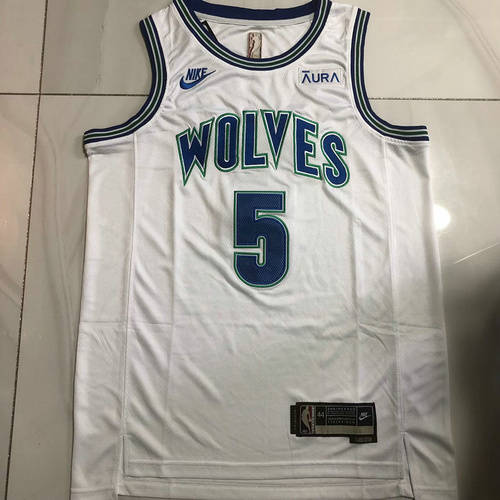 森林狼5号爱德华兹复古白色xs-xxl