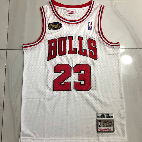 公牛队23号au密绣白色97-98总冠军xs-xxl