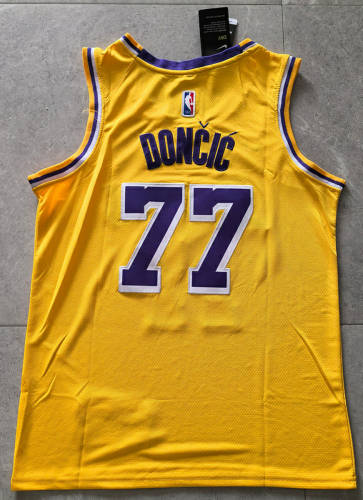 NBA湖人队77#东契奇黄色球衣