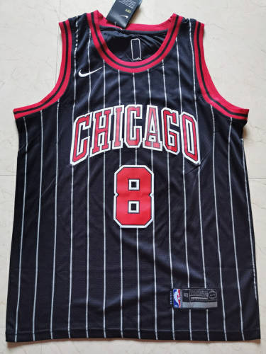 NBA耐克球迷版公牛8号拉文声明版黑色球衣