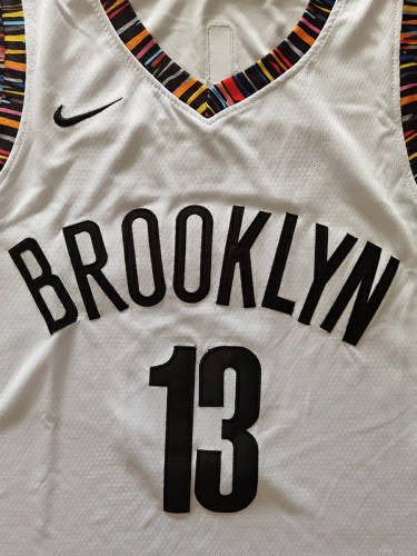 NBA耐克球迷版篮网13#哈登城市版白色球衣